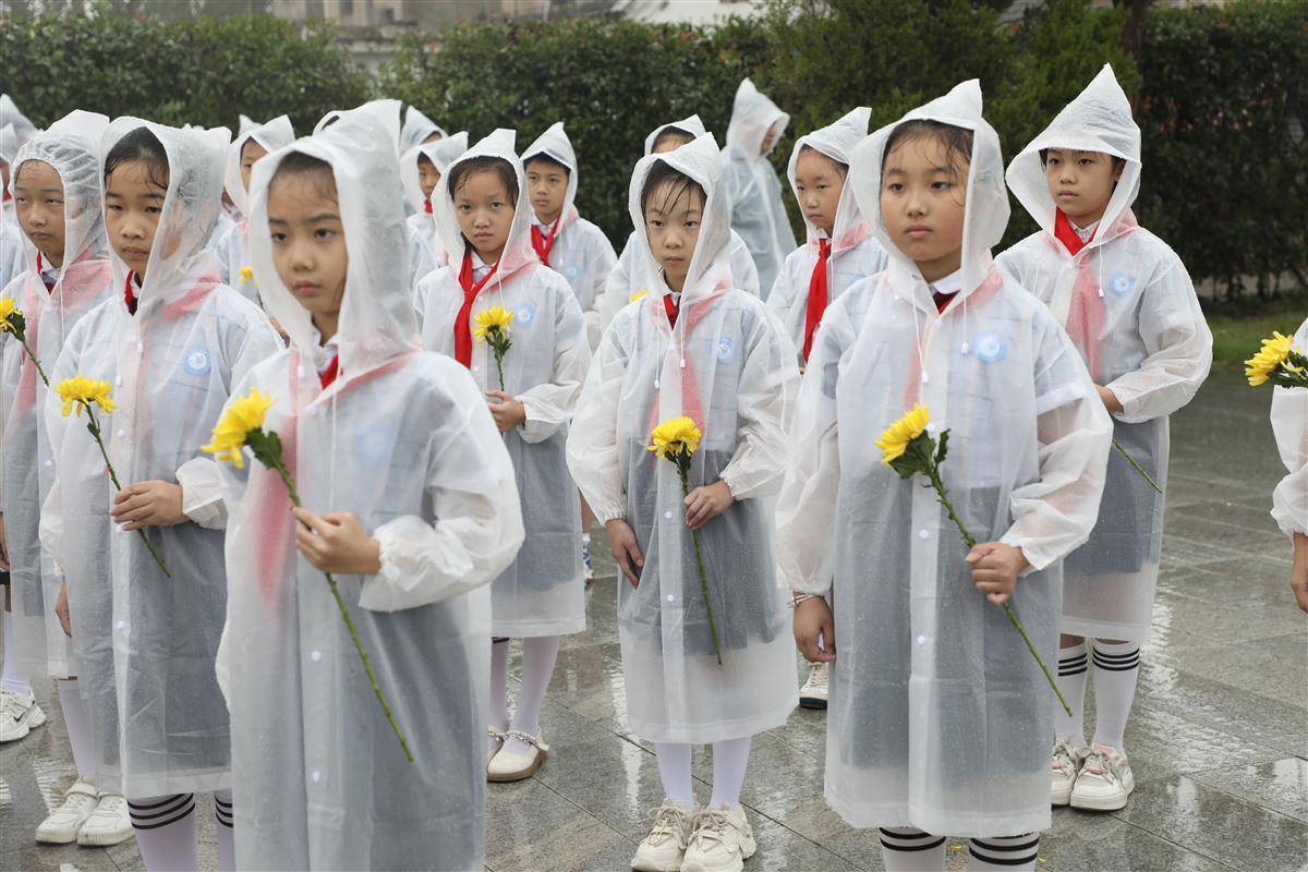 随后,全体肃立,向烈士们默哀;少先队员献唱《我们是共产主义接班人》,表达继承光荣传统、踏着革命先辈足迹前进的远大志向。